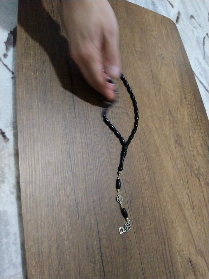 Koyu siyah boncuklardan oluşan, gotik tarzda metal detaylı erkek tesbih. Bohem tarzına uygun bir aksesuar.
