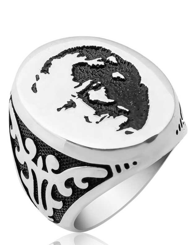 Erkekler için vintage tarzda, klasik zarafeti yansıtan siyah ve gri tonlarda detaylı işlemeli yüzük.