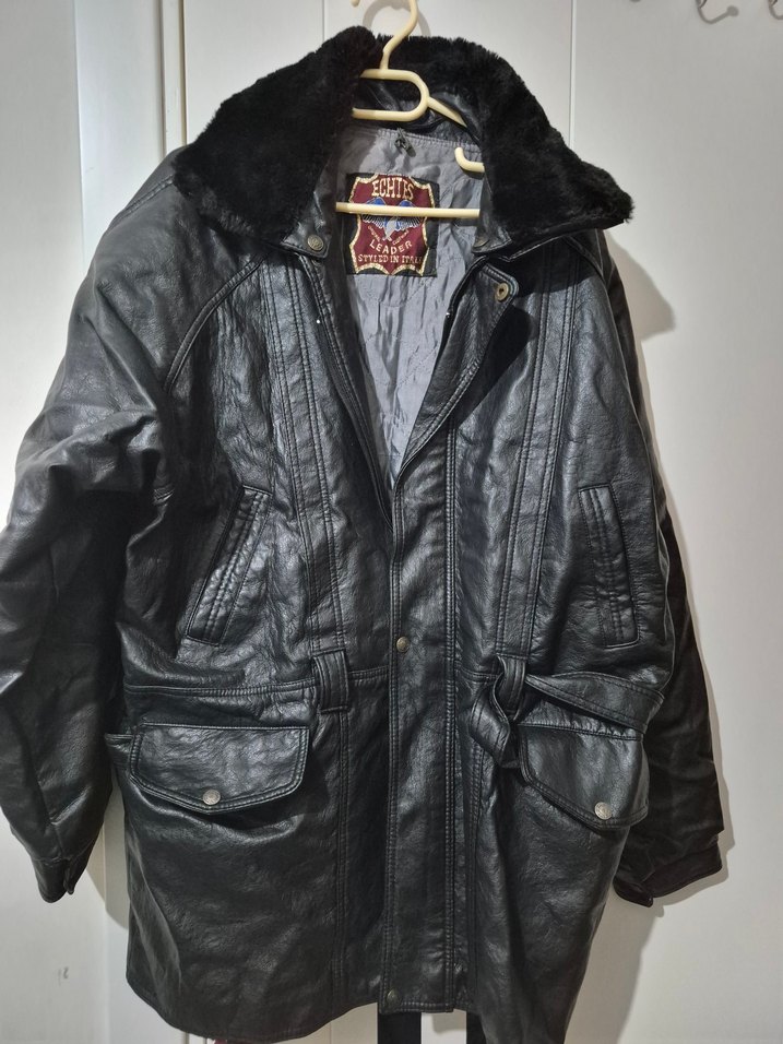 Siyah deri, kürklü yakalı biker mont. Notlu yaka ve uzun kollu, normal midi boyda, rahat kesim. Günlük kullanım için uygundur. Babamdan hatıra çok eski bir monttur hakiki deridir. Hiçbir yerinde bir kusuru yoktur fotoğrafta gördüğünüz gibidir.