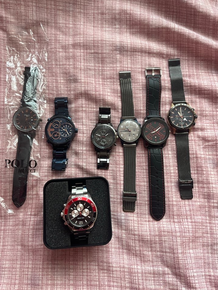 İş tarzına uygun, siyah renkte, karanlık rock punk stilde erkek kol saatleri koleksiyonu. Metal ve deri kayışlı farklı tasarımlar içerir. ⌚ teklif ver al poşetli olab ve kutuda olan saatler sıfırdır diğerleri sayılı kullanıldı hepsinin fiyatı farklıdır mesaj atabilirsiniz