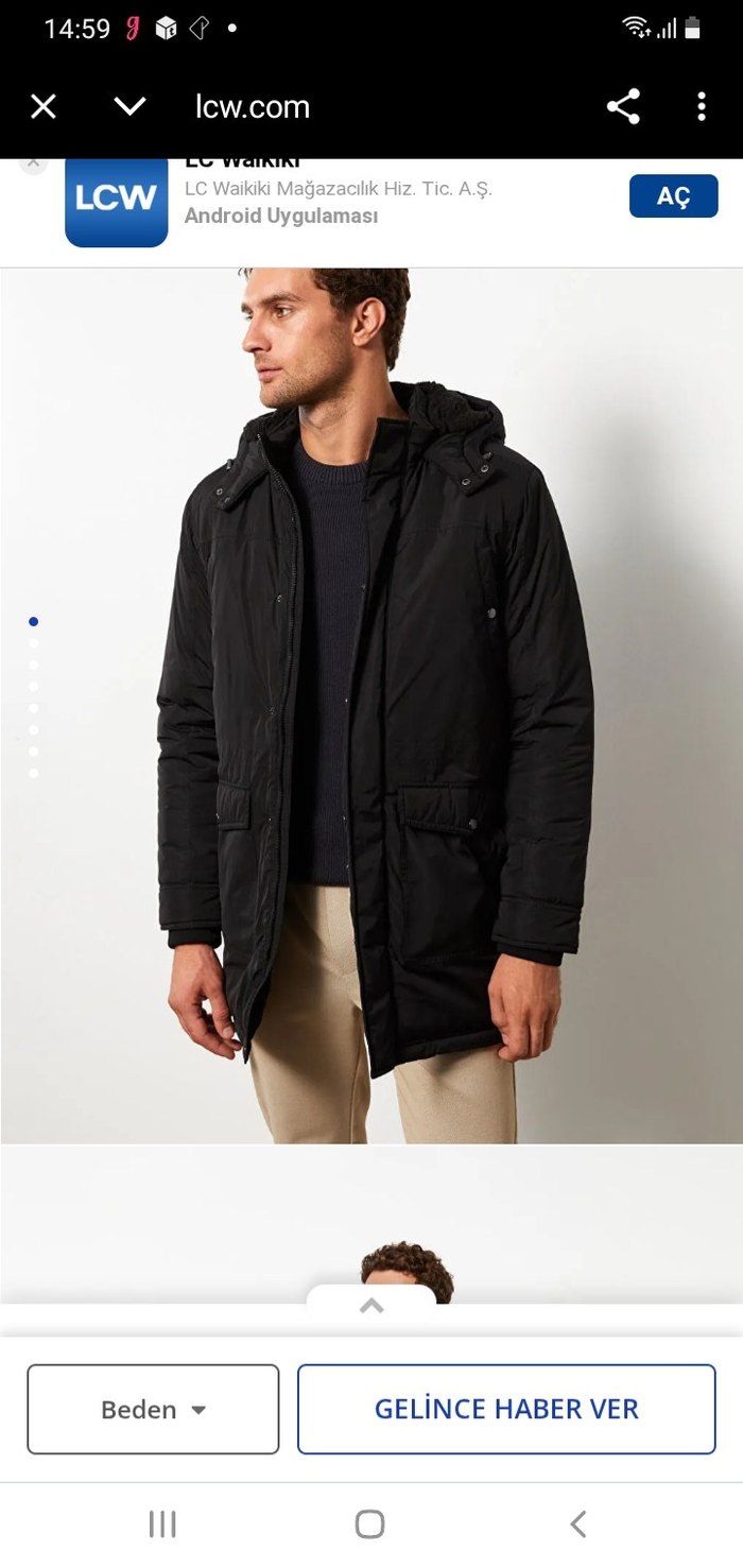 Siyah renkli, , normal uzunlukta erkek kabanı. iç kısminda pamuklanma mevcut.fermuarın uç kısmı koptuğu ićin lastik takılı