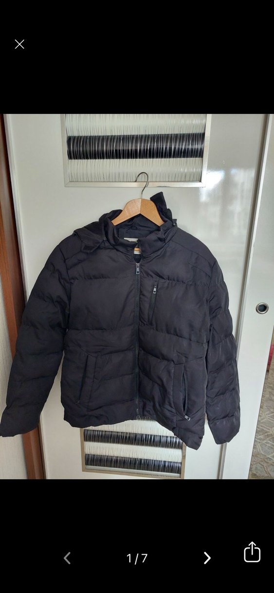 Erkeksiyah kapitone kışlık mont, uzun kollu ve yüksek yakalıdır. Fermuarlı ön ve cepleri vardır, yumuşak ve sıcak kumaştan üretilmiştir.