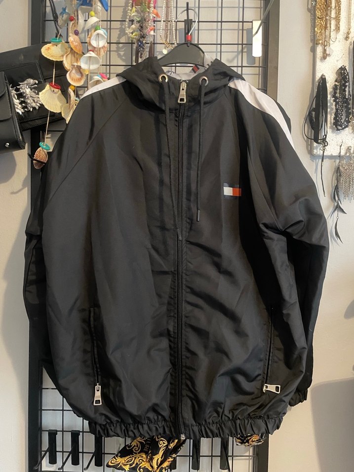 Erkek için yağmurluk. Tommy hilfger marka ( orjinal değil). Hiç giyilmedi. Kol kısmında tommy yazısı koldan ve belden lastikli