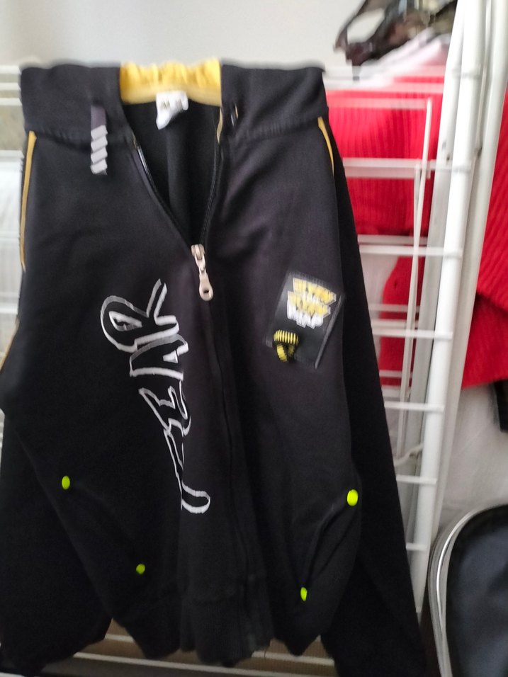 Fermuarlı ve kapüşonlu, sentetik kumaştan yapılmış, baskılı desenli ve dar kesim erkek siyah ceketi. Sokak modasına uygun, trend belirleyici tarzda.