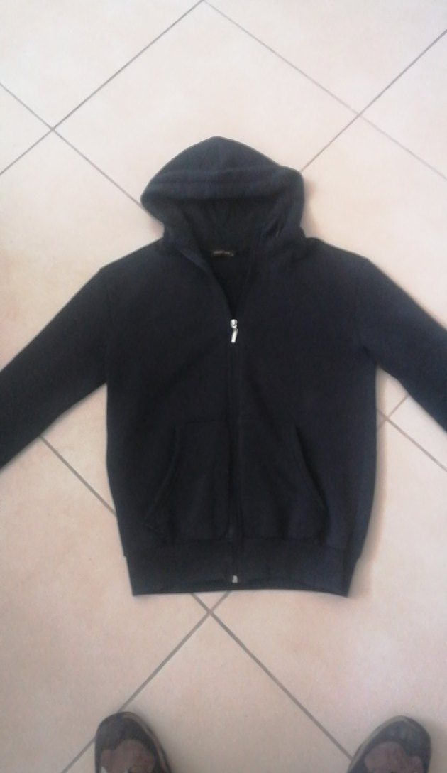Yumuşak ve sıcak kumaştan yapılmış, kapüşonlu ve fermuarlı siyah erkek sweatshirt. Uzun kollu, düz tasarımlı, street wear tarzında. Beden m boyu 65 iki koltuk arası 50 cm kodu Ü 143