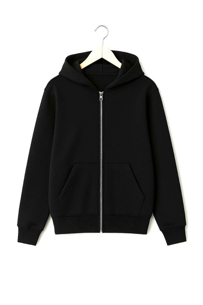 3 iplik şardonlu kompakt penye-standart kalıp Fermuarlı ve uzun kollu, siyah kapüşonlu erkek sweatshirtü. Yumuşak ve sıcak tutan kumaştan, sade ve sokak tarzı.