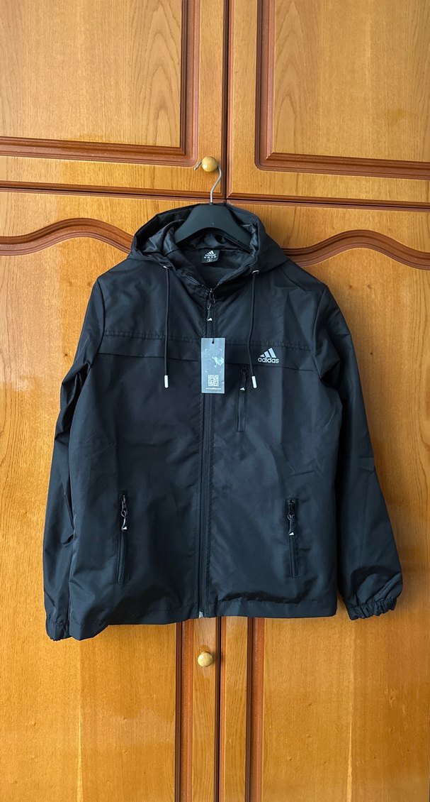 Erkekler için siyah kapüşonlu yağmurluk, normal kesim, fermuarlı cepler ve uzun kollu. Dış mekan sokak stili için uygun. ️