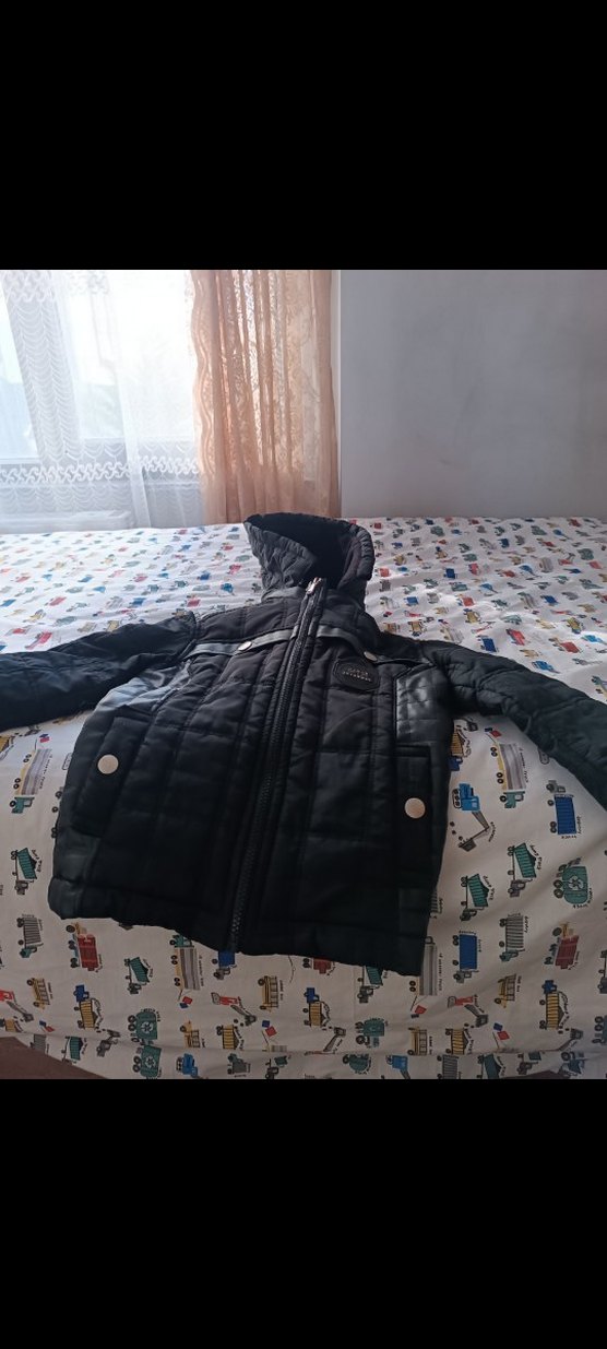 Erkek çocuklar için kapüşonlu ve kemerli detaylara sahip siyah, dar kesim mont. Sıcak ve yumuşak kumaştan, sokak tarzına uygun.