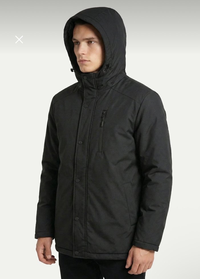 Erkek Siyah Kapüşonlu Mont