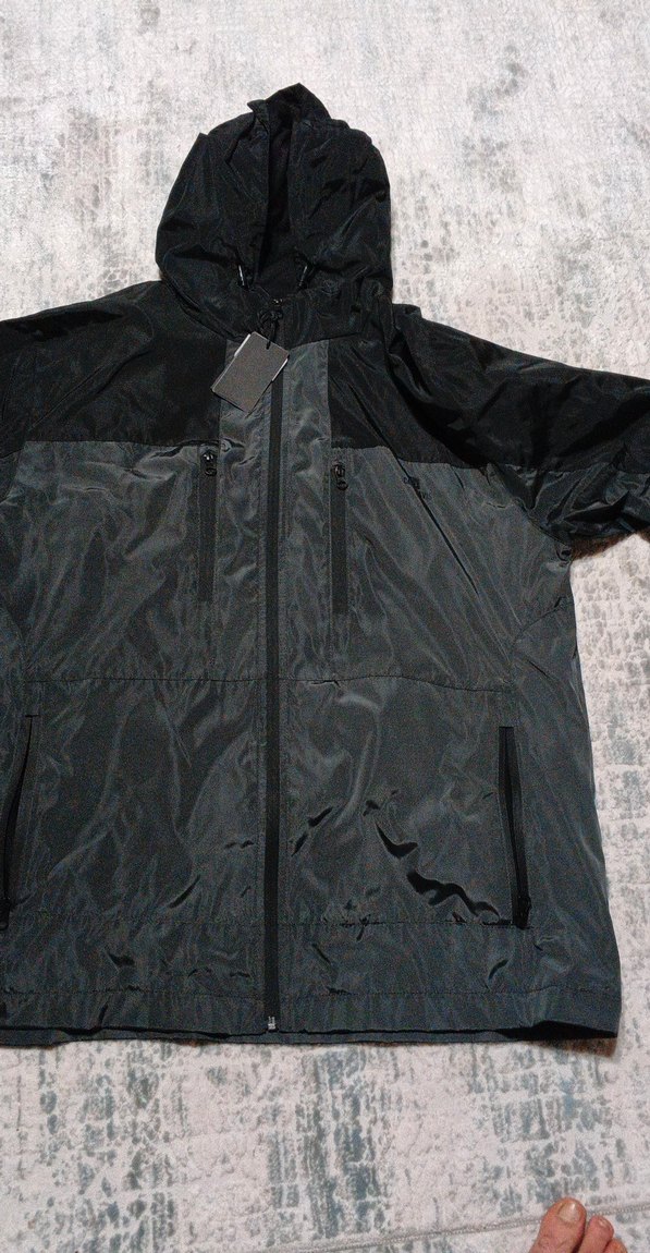 Erkekler için siyah kapüşonlu rüzgarlık, fermuarlı öne sahip, uzun kollu ve bol kesimdir. Sentetik kumaştan yapılmış, çıtçıt yakalı ve normal midi boydadır. ️