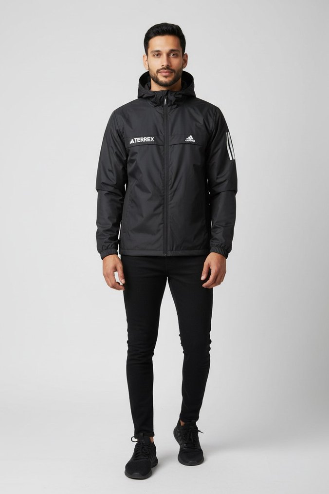 Erkek Siyah Kapüşonlu Rüzgarlık Ceket