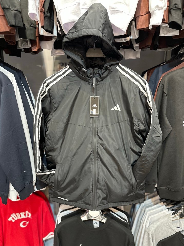 Erkek siyah kapüşonlu, fermuarlı spor mont. Yüksek yakalı, uzun kollu ve normal boyda. Sıcak tutan fleece kumaştan, omuzlarda beyaz şerit detaylı. Bedenleri mevcuttur. İletişime geçebilirsiniz