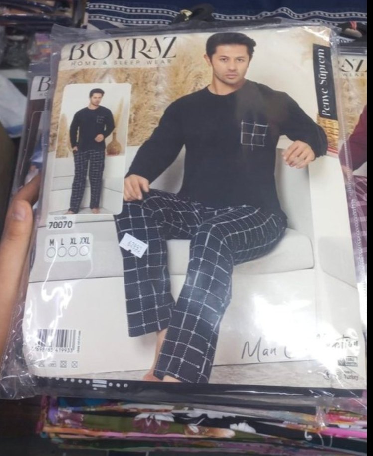 Siyah kareli, uzun kollu, yuvarlak yaka, rahat kesim erkek pijaması. Trendy ve şık bir sokak stili sunar. ️