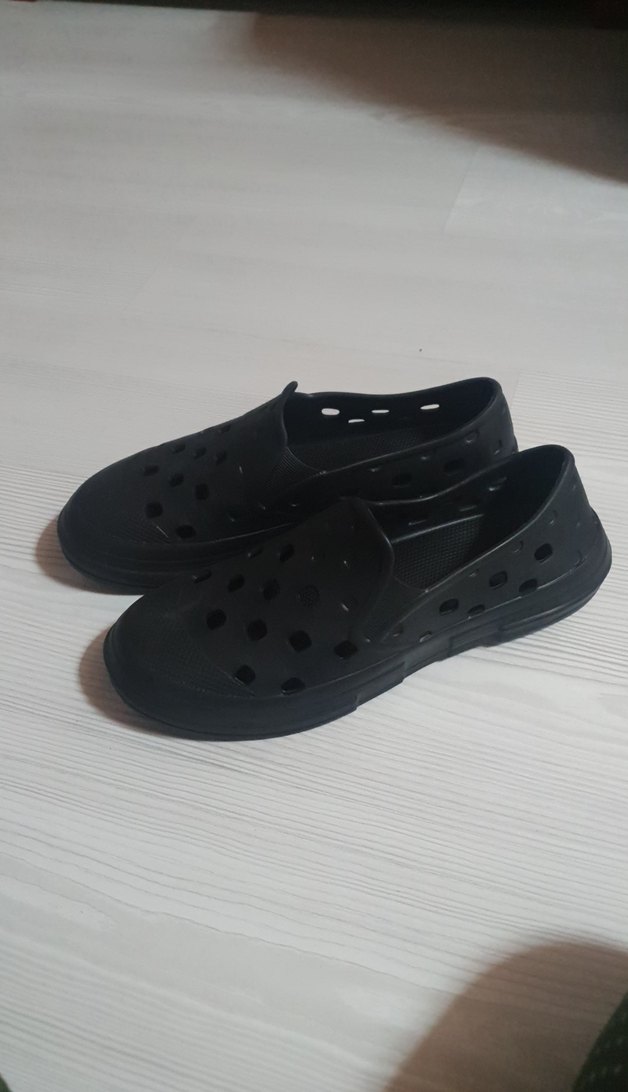 Siyah kauçuk erkek su ayakkabısı, minimalist ve desensiz tasarıma sahip. Günlük sokak tarzına uygun.