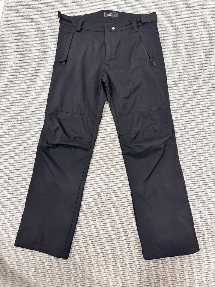 Erkekler için siyah kayak pantolonu, sentetik kumaştan, normal boyda, fermuarlı ceplere sahip, rahat kesim ve outdoor kullanıma uygun.1 defa giyildi sıfır ayarında