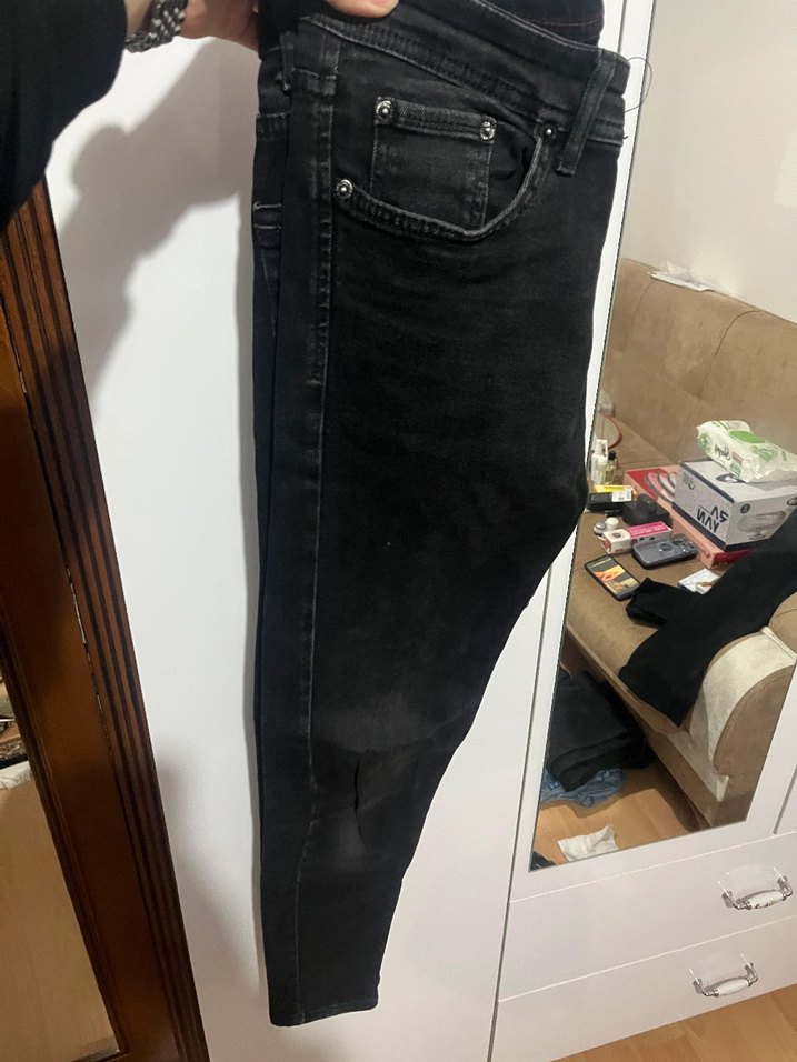 Erkek Siyah Kemerli Dar Kesim Denim Jean