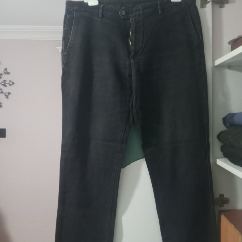 Siyah renkli, kemerli bel ve normal boyda, rahat kesim erkek denim pantolon. Günlük kullanım için uygundur.