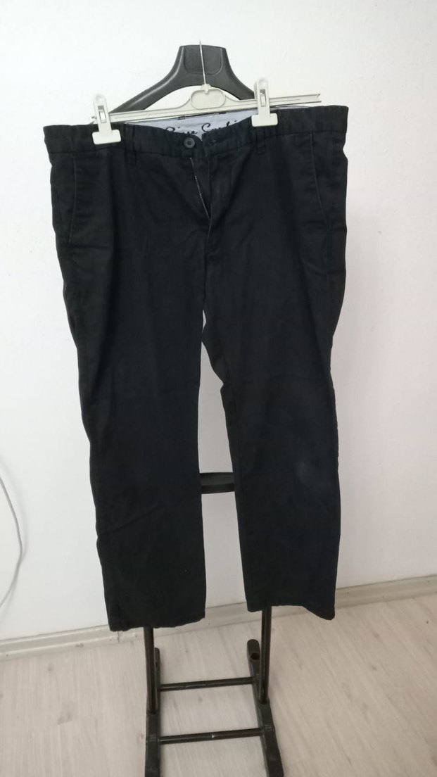 Erkekler için siyah denim pantolon, regular fit ve normal boyda. Kemerli ve desen içermeyen tasarımıyla günlük kullanım için uygundur. #pierrecardin#bershka#mango#
