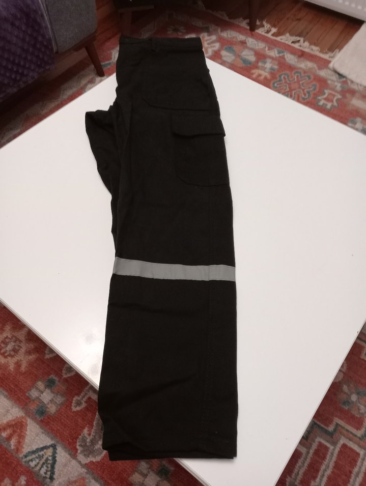 Erkekler için siyah, uzun, kemerli ve reflektör detaylı rahat kesim pantolon. Yumuşak ve sıcak kumaştan, günlük ve sokak stiline uygun.