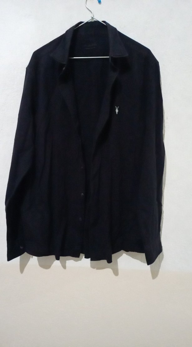 Erkekler için siyah keten gömlek, uzun kollu ve yakasında notch detay bulunur. Düğmeli ve normal kesim olan bu gömlek minimalist goth tarzda, ofis kullanımı için uygundur.