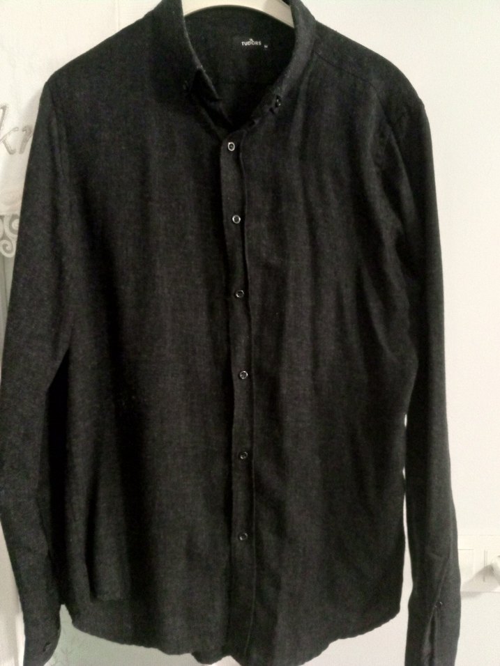 Erkek Siyah Keten Uzun Kollu Gömlek