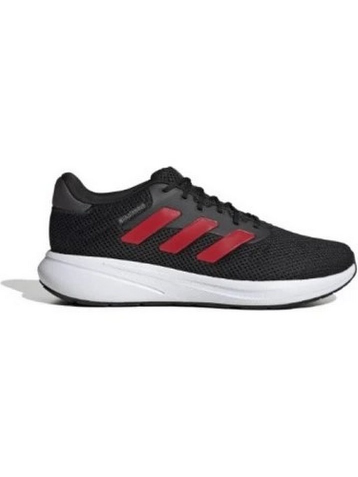 Erkekler için siyah, kırmızı çizgili, bağcıklı ve beyaz kauçuk tabanlı spor ayakkabıdır.