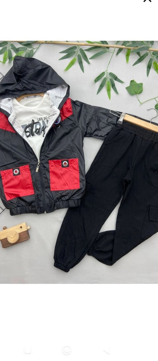 Erkek Siyah kırmızı günlük 3 lu takim