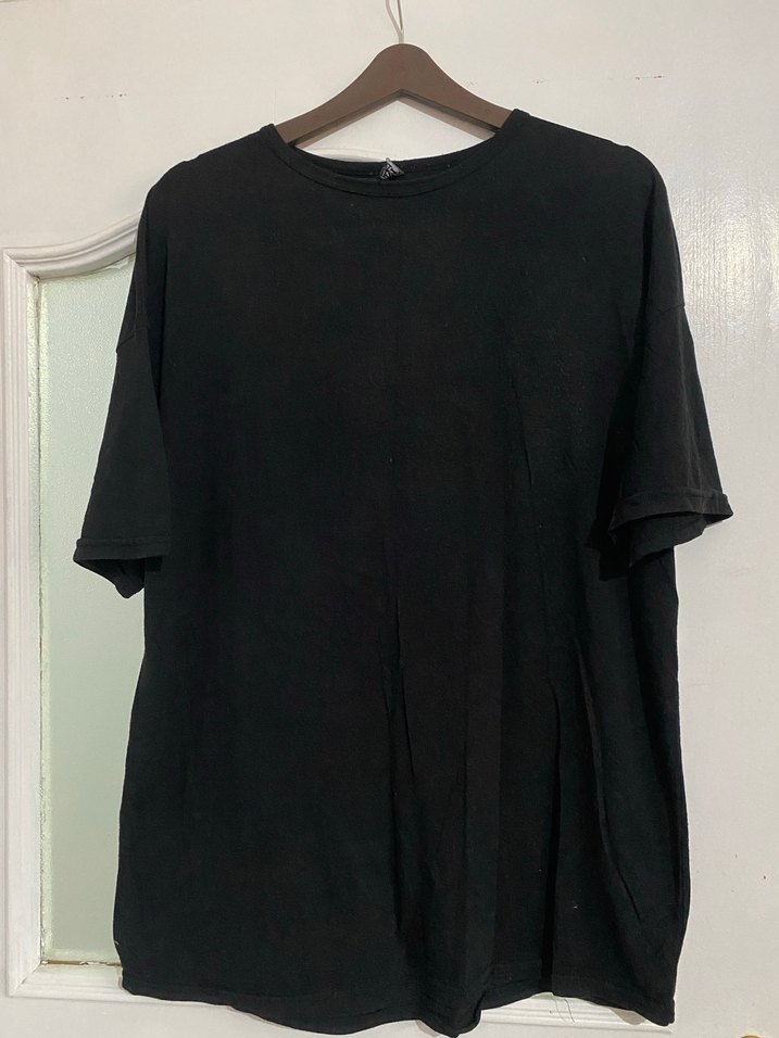 Erkek siyah tişört, keten kumaştan, kısa kollu ve bisiklet yaka, rahat kesimiyle günlük kullanıma uygun sade tasarıma sahiptir. Uzunluk 62 cm Eni 60 cm
