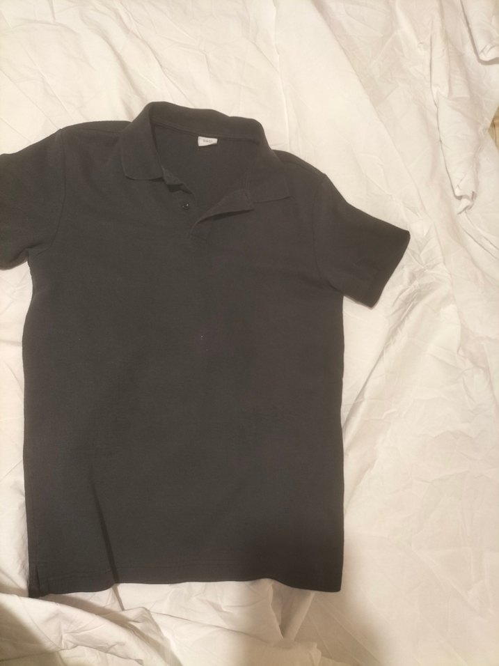 Erkekler için siyah, kısa kollu, yakalı ve fitted kesim polo tişört. Nefes alan keten kumaştan, günlük rahat kullanım için uygun sade tasarım.