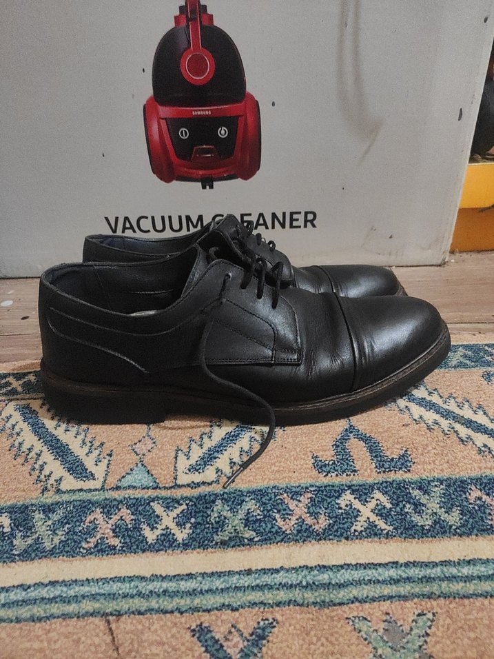 Siyah erkek klasik ayakkabı, bağcıklı detaylı ve kauçuk malzemeden. Ofis kullanımı için uygun, normcore tarzında, desensiz ve koyu renkte.