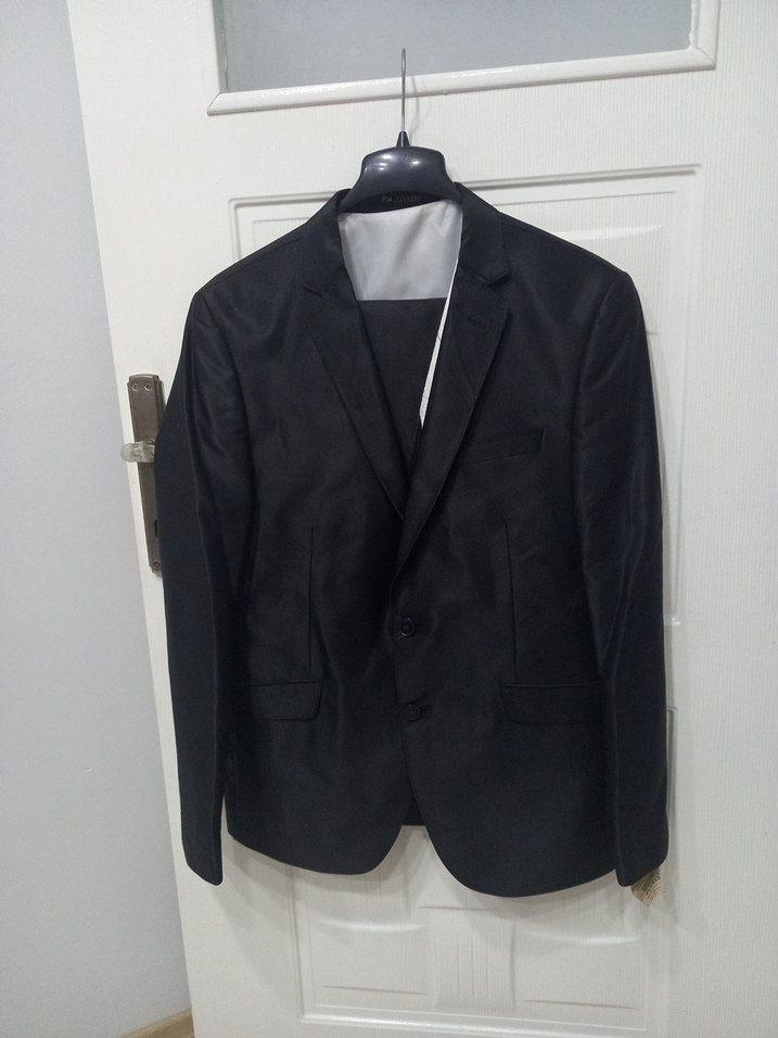 Siyah erkek ceket, klasik notch yaka ve düğmeli ön kapama ile. Uzun kollu ve regular fit, iş ortamı için uygun. ️