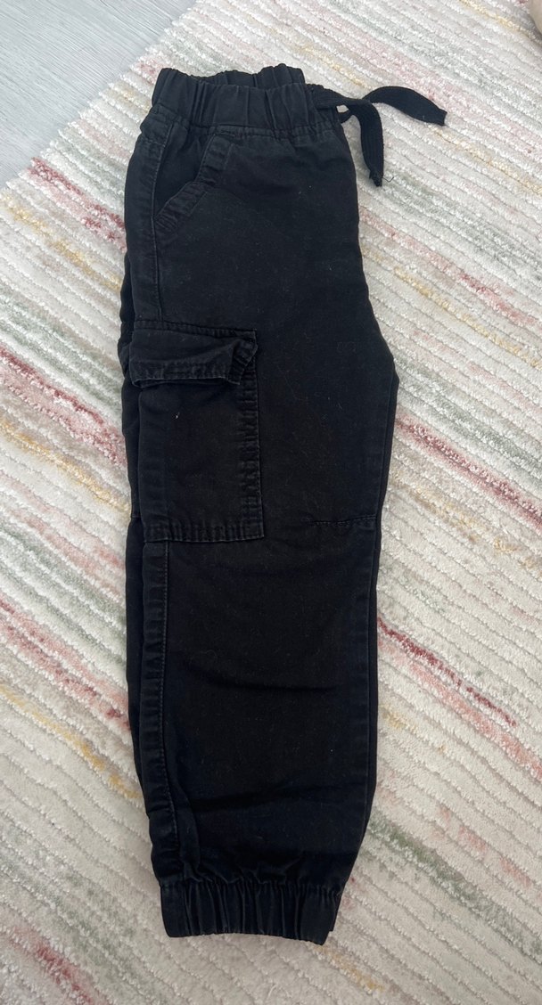 Erkek çocuklar için siyah kot pantolon. Sokak modasına uygun, rahat ve desensiz tasarım.