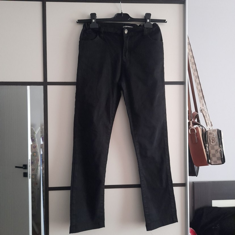 Erkekler için siyah kot pantolon, düzenli kesim ve kemerli bel ile trendi rahat bir stil sunar. Düz, desensiz tasarıma sahiptir.