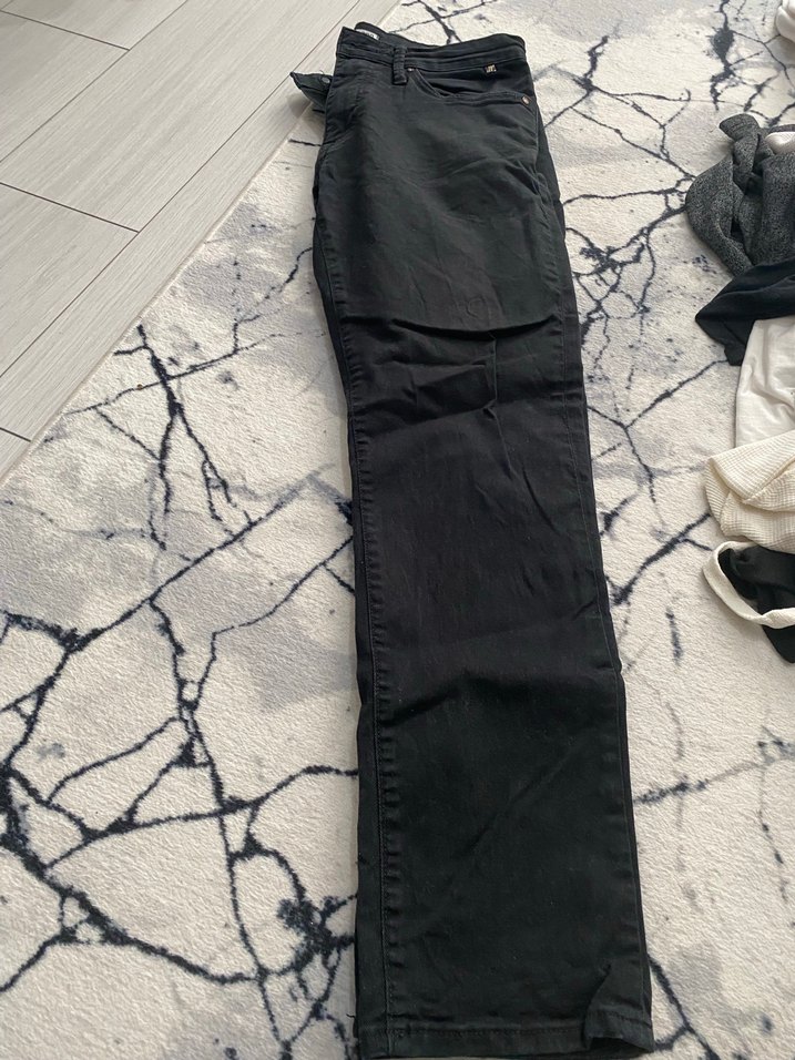 Bel 43 cm boy 95 cm Erkekler için siyah kumaş pantolon, normal boy ve regular fit. Kemerli olup, yumuşak sentetik kumaştan yapılmıştır. Sokak stiline uygun, dış mekan kullanımı için idealdir.