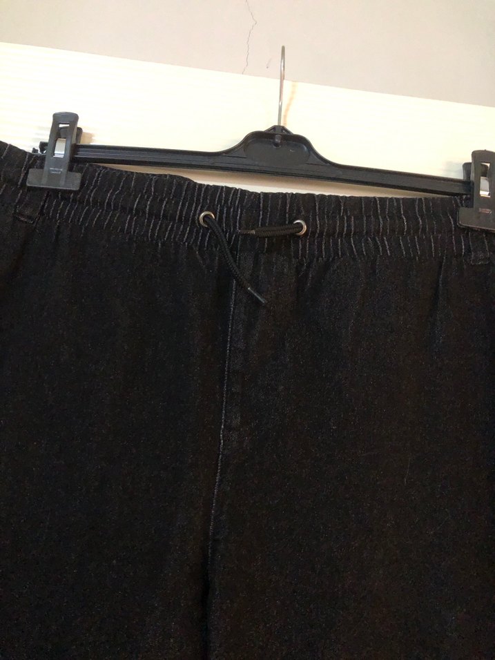 Erkekler için kemerli, bol kesim siyah uzunkot pantolon. Rahat ve minimalist tarzda, günlük sokak giyimine uygun.