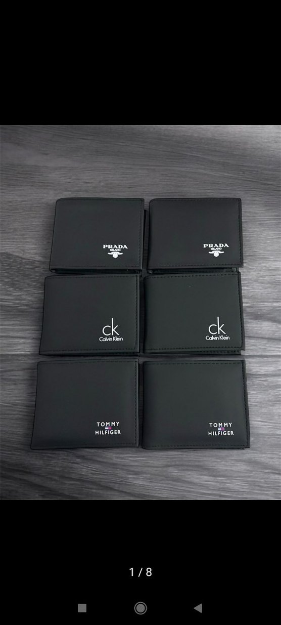 Prada, Calvin Klein ve Tommy Hilfiger logolu siyah erkek cüzdanları, trend ve iş stiline uygun.