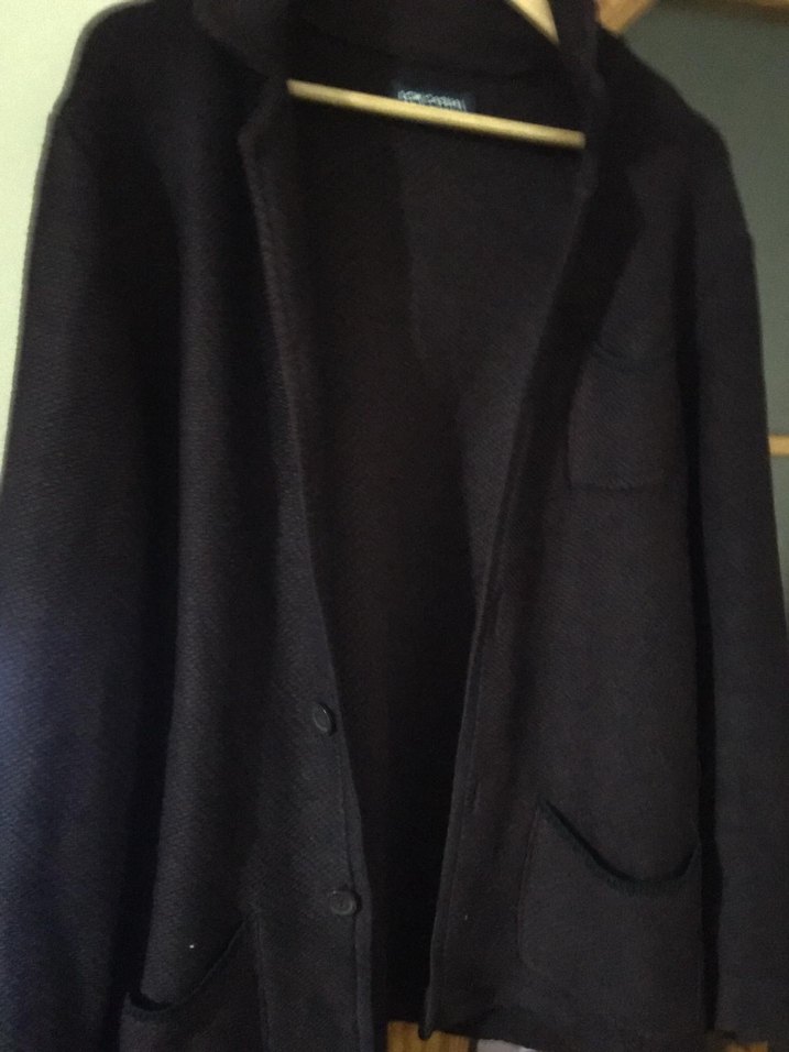 Siyah renkli, midi boy, düğmeli erkek ceket. Yumuşak ve sıcak kumaştan, uzun kollu, normal kesim. İş ve ofis kullanımı için uygundur.