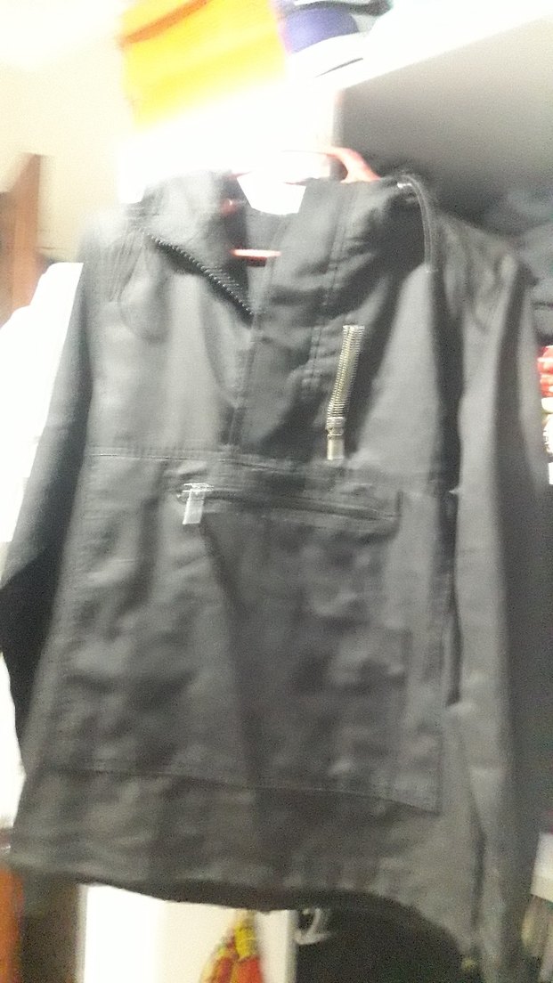 Siyah renkli, notalı yaka ve uzun kollu erkek yağmurluğu. Bol kesim, fermuarlı cepler ve ön fermuar detaylarıyla sokak stili için uygundur. ️