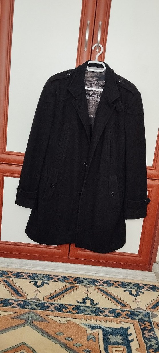 Erkek Siyah Midi Düğmeli kaşe kaban