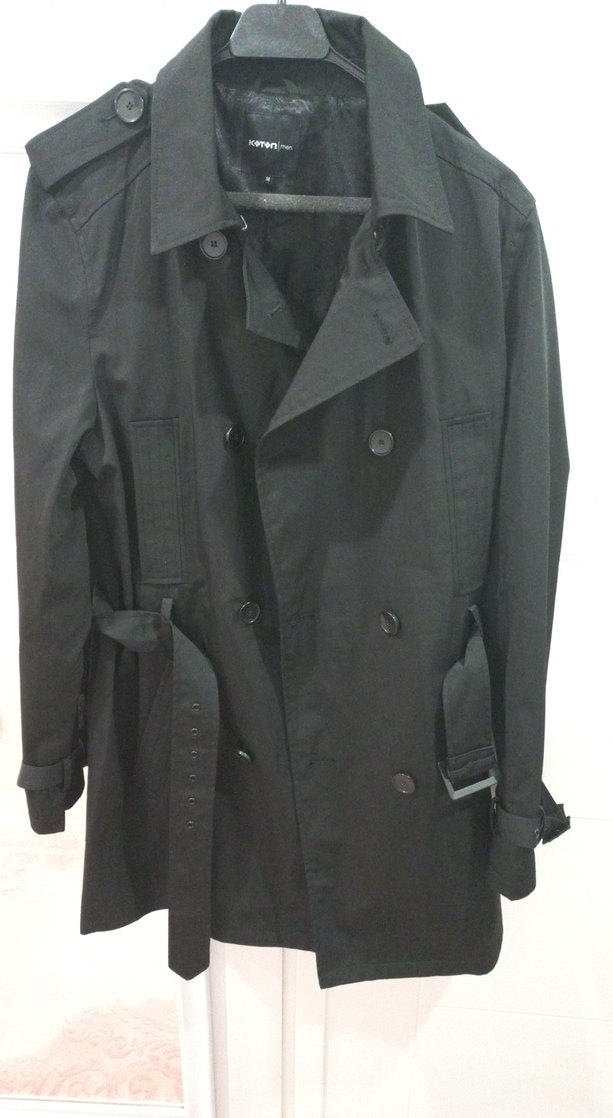 Siyah midi boy kemerli trençkot, yakası kesik ve bol kesimdir. Sentetik kumaştan yapılmış, askılı kolludur. Günlük kullanıma uygundur.