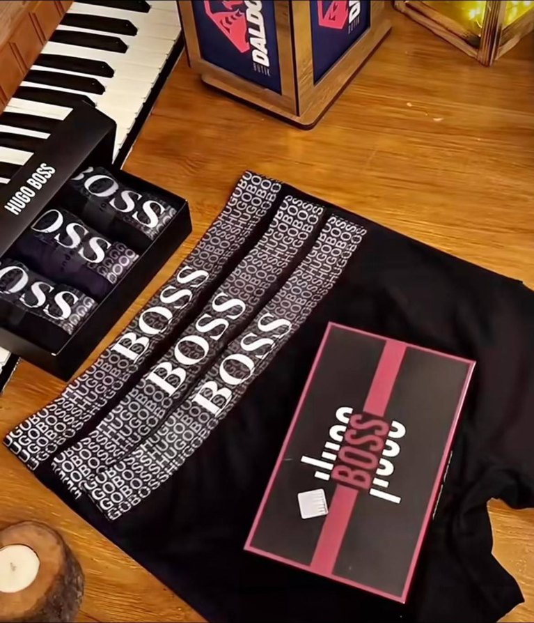 Siyah renkli, baskılı ve dar kesim erkek mini boxer. Bel kısmında "BOSS" yazısı yer alır. Yumuşak ve rahat kumaştan üretilmiştir.
