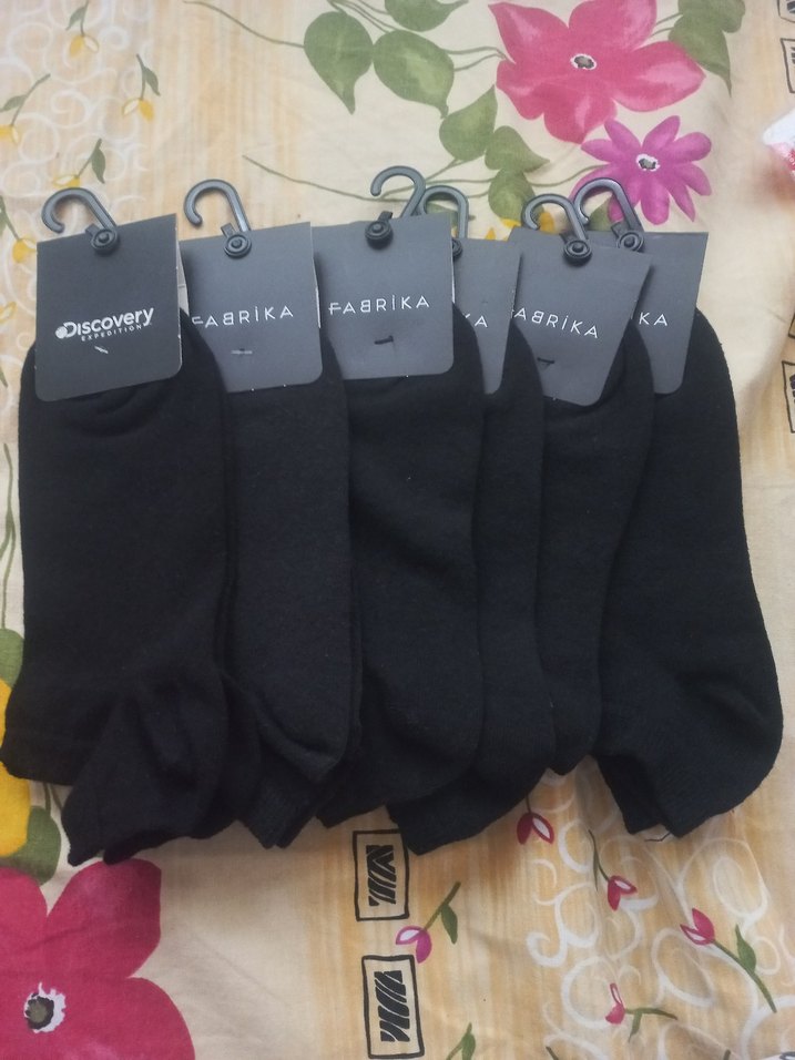 Fitted siyah mini çoraplar, rahat ve sade tasarımıyla günlük kullanım için uygundur. Fabrika ve Discovery markalarından.