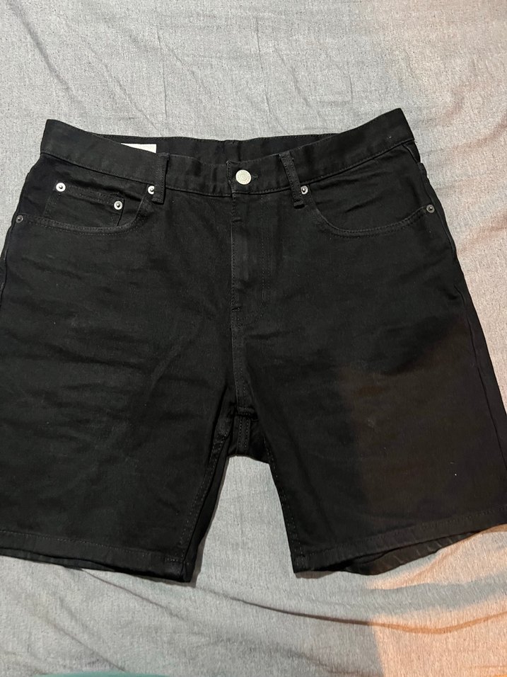 Siyah denim mini şort, rahat kesimiyle günlük ve sokak stiline uygun. Desensiz, zahmetsiz şıklık sunar.
