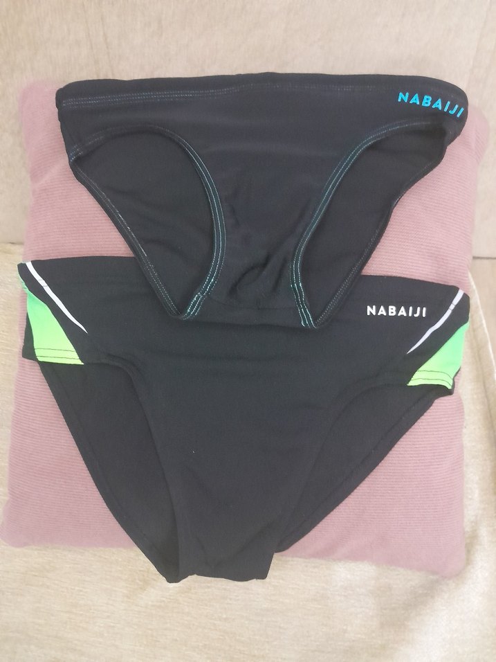Nabaiji markalı, siyah renkte, erkek çocuk mayo. Rahat ve dayanıklı yüzme için uygundur. ♂️ İki mayo da sadece havuz antrenmanlarında kullanıldı. Sökük, yırtık yoktur. Bel kısmında ayarlanabilir ip bağcık vardır. 7-11 yaş arası erkek çocukları için uygundur.