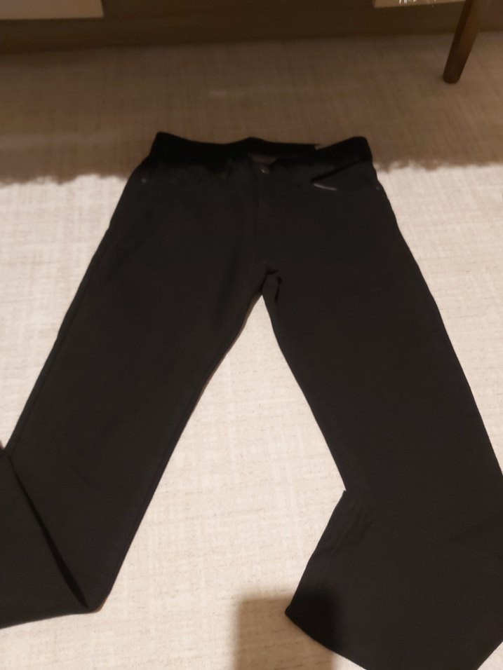 Erkekler için siyah, düz desenli, sentetik kumaştan yapılmış, normcore tarzda ve günlük kullanıma uygun fit pantolon.38 beli 100 boyu 16 paça