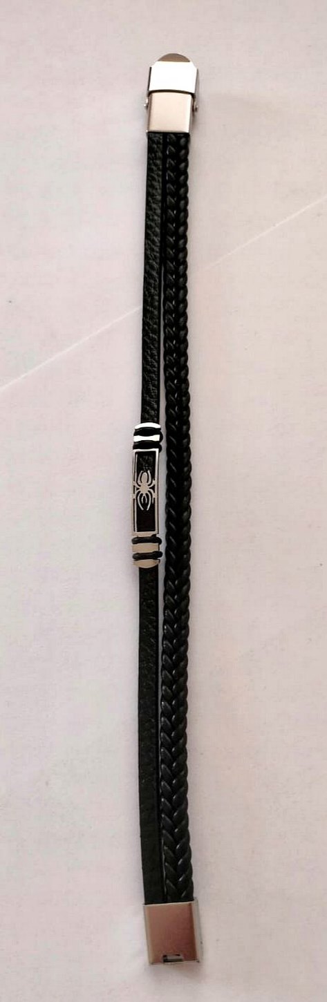 Erkekler için siyah örme biker bileklik, metal üzerinde örümcek desenli gotik tarzda. ️