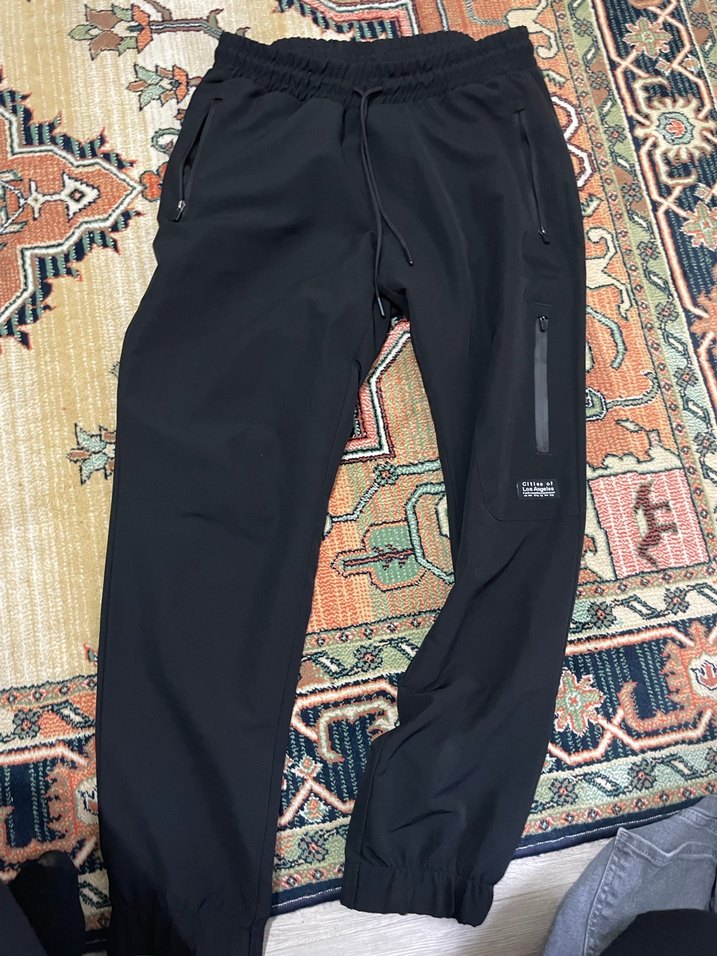 Erkekler için siyah, sentetik kumaştan, bol kesim, fermuarlı cepli outdoor eşofman, günlük kullanım için uygundur.