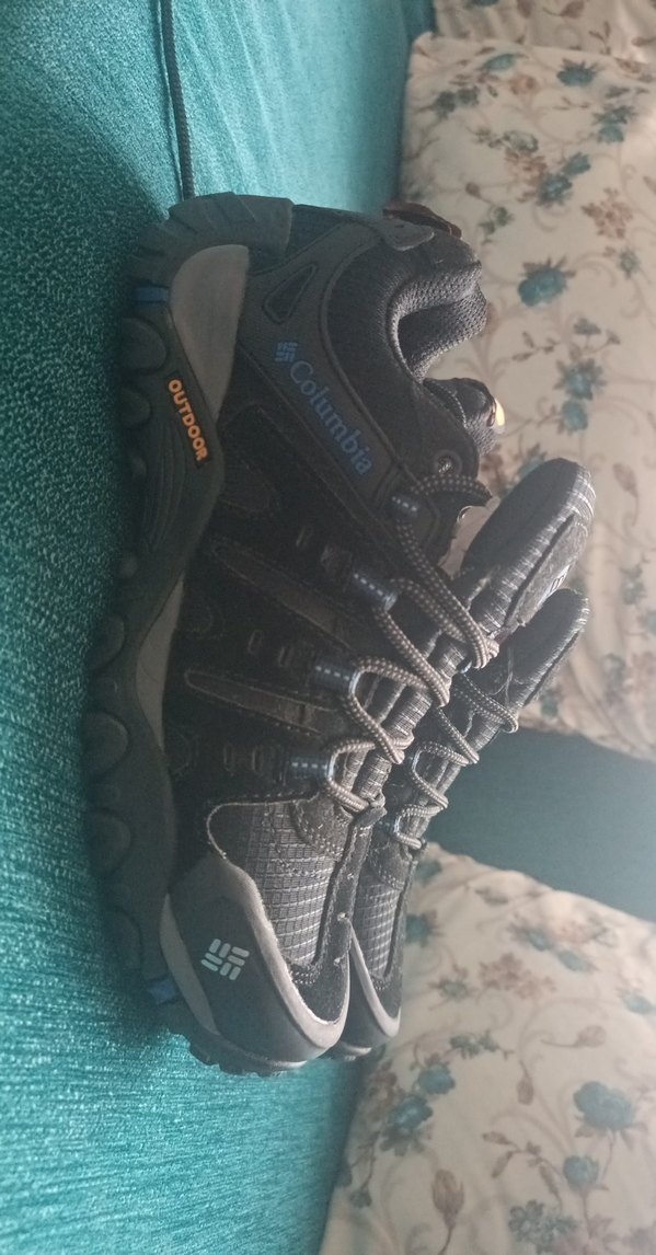 Siyah erkek outdoor ayakkabı, kauçuk taban ve cırt cırtlı kapanışa sahip. Spor ve günlük sokak tarzına uygun baskılı detaylar içerir. ️
