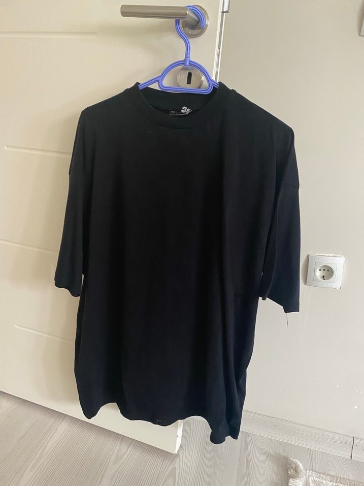Erkekler için siyah, yuvarlak yakalı, bol kesim ve kısa kollu tişört. Minimalist ve rahat tarzda, günlük kullanıma uygun sentetik kumaştan yapılmıştır.