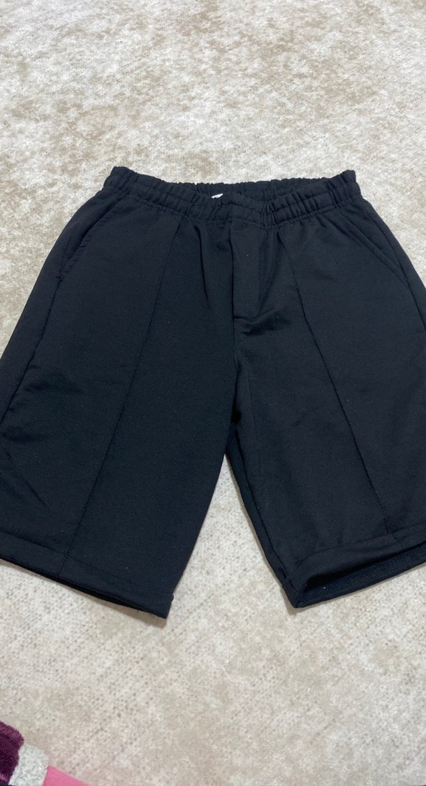 Erkekler için siyah pamuklu, rahat kesim ve kısa boy şort, günlük kullanıma uygun, zahmetsiz şıklık sunan athleisure tarzında.